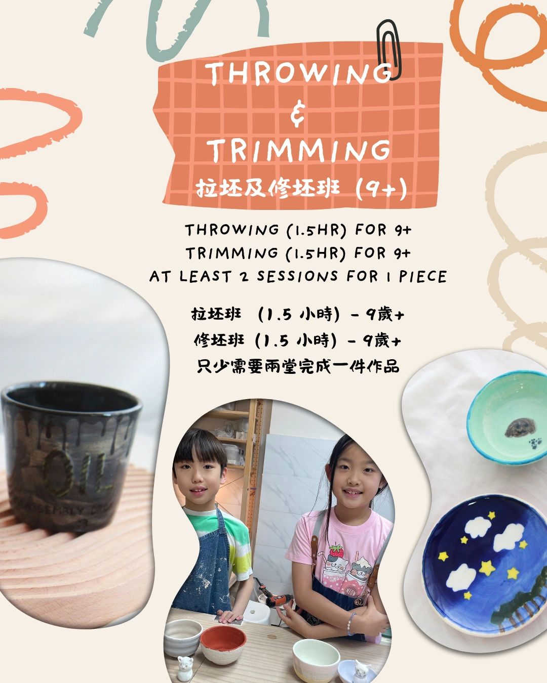 拉坯班 (1.5小時): 適合 9 歲或以上兒童,學習手腳並用地使用拉坯機製作出圓形、工製的陶藝品。